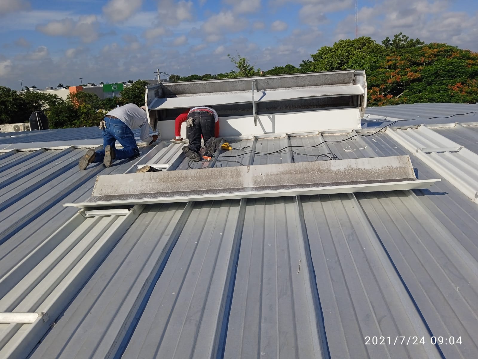 - Cambio de Laminas, cumbreras, canalones, molduras, laminas traslucidas en mal estado, pijas, sellados, empaques, limpieza general de cubiertas, impermeabilización.